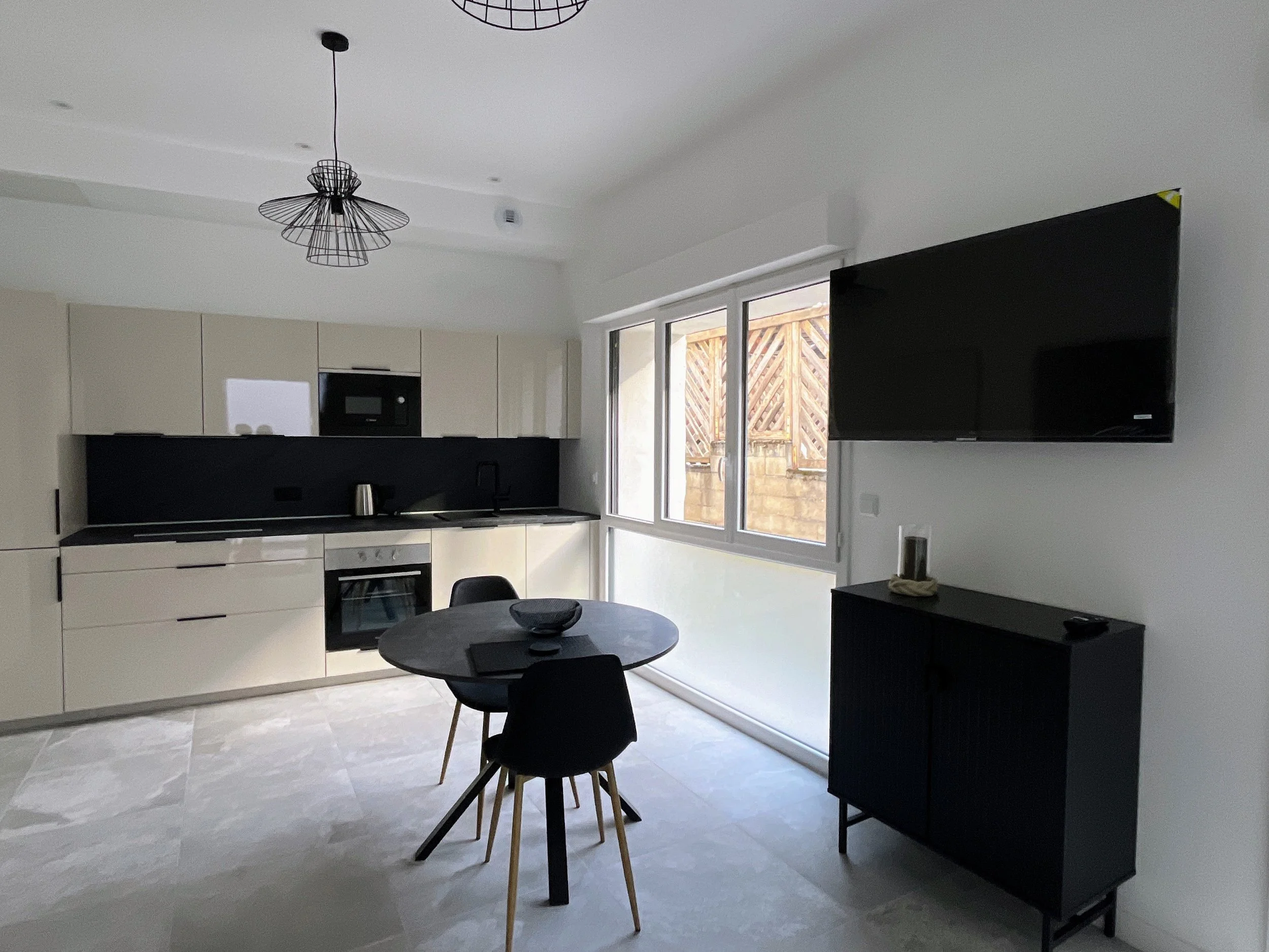 An external staircase leads to the first-floor terrace, on the left side of the terrace is the entrance to a separate rental accommodation and to the right is the entrance of Le Catelan. You enter directly into the spacious open plan living/dining/kitchen area.